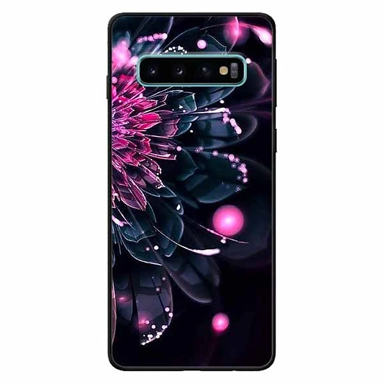 Ốp lưng in cho Samsung S10 Plus Mẫu Mẫu Đơn Hồng Đen