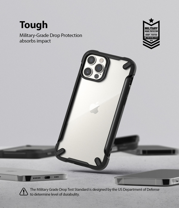 Ốp lưng iPhone 12/iPhone 12 Pro RINGKE Fusion X2 được sản xuất với độ chính xác cao chống va đập tốt với tiêu chuẩn chống sốc của quân đội Mỹ (MIL STD 810G 516.6), phân tán lực tác động khi rơi, giữ cho điện thoại của bạn luôn an toàn.