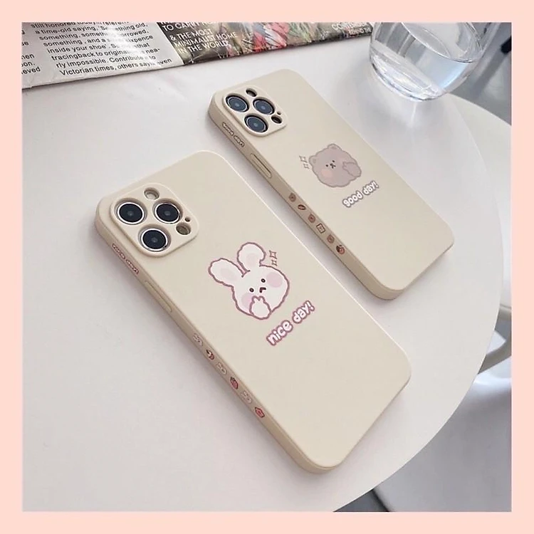 Ốp lưng iphone - Ốp đôi viền vuông in hình Gấu và Thỏ dành cho ip 7/8,7/8Plus, X/Xsmax, 11/11Promax, 12/12Promax
