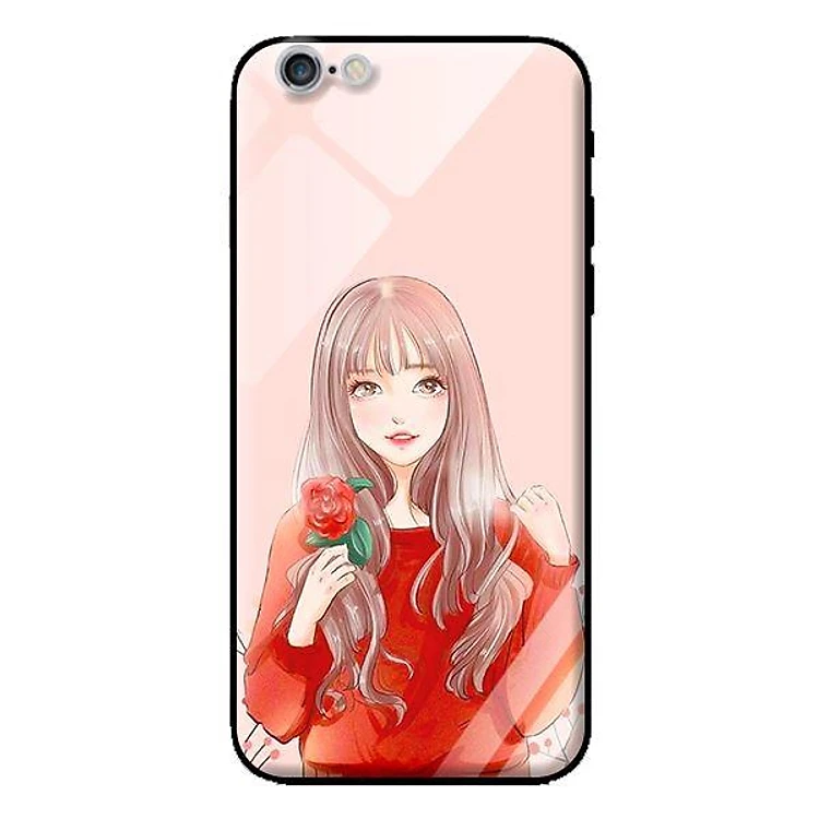 Ốp lưng kính cường lực cho iPhone 6S Plus Cô Gái Cầm Hoa - Hàng chính hãng