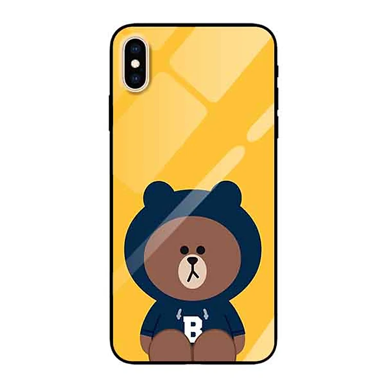 Ốp lưng kính cường lực cho iPhone Xs Max Nền Chú Gấu Áo B Xanh - Hàng Chính Hãng