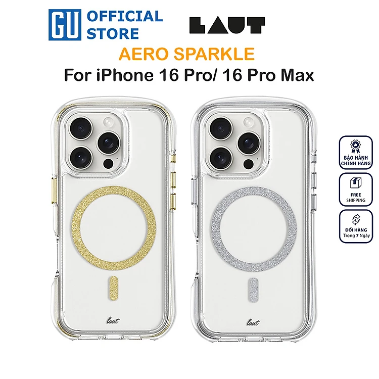 Ốp Lưng LAUT Aero Sparkle Cho iPhone 16 Pro/ 16 Pro Max Có Sạc Không Dây Thiết Kế Trong Suốt Như Pha Lê Hàng Chính Hãng