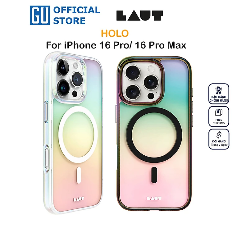 Ốp Lưng LAUT HOLO Cho iPhone 16 Pro/ 16 Pro Max Dải Màu Cực Quang 3 Chiều Tuyệt Đẹp Tương Thích Sạc Không Dây Hàng Chính Hãng