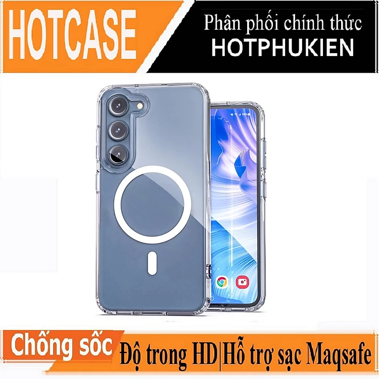 ốp lưng magnetic cho Samsung Galaxy S23 Ultra / S23 Plus / S23 5G hiệu HOTCASE Ultra Crystal Clear - thiết kế trong suốt, chống sốc chống va đập - Phân phối hotphukien