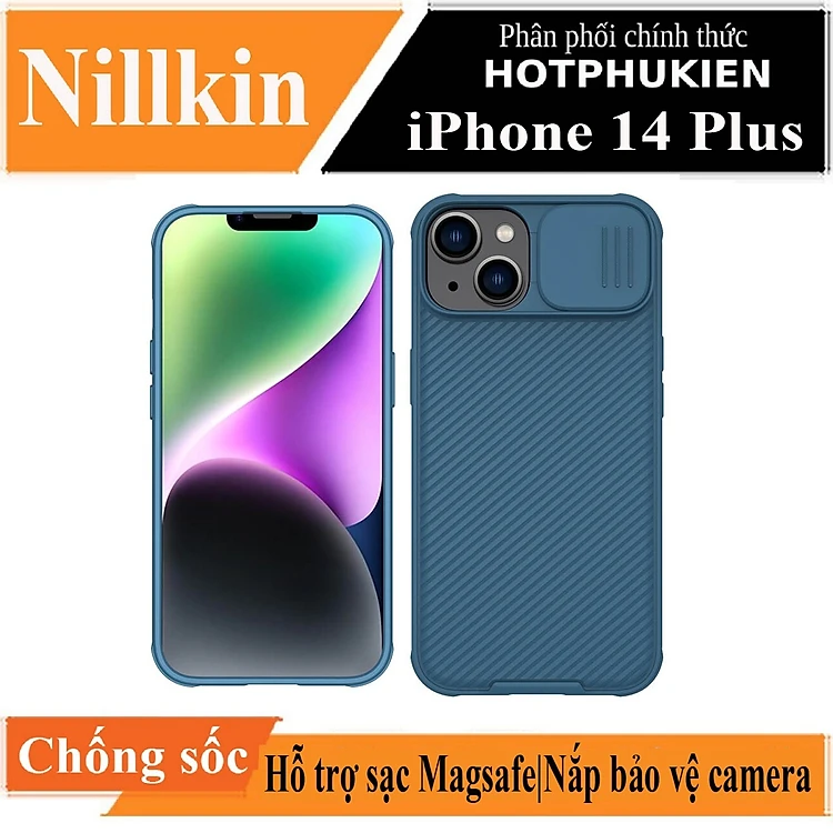 Ốp lưng maqsafe chống sốc cho iPhone 14 Plus (6.7 inch) bảo vệ Camera hiệu Nillkin Camshield Pro chống sốc cực tốt, chất liệu cao cấp, có khung & nắp đậy bảo vệ Camera - hàng nhập khẩu