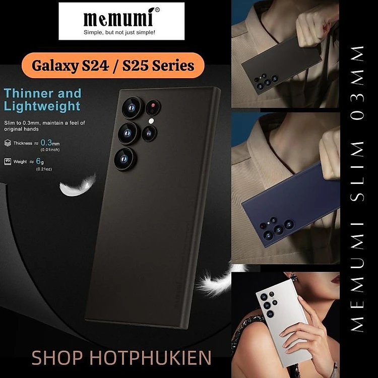Ốp lưng cho S25 Ultra , S24 Ultra , S23 Ultra , S25 Plus , S25 , S24 Plus , S23 Plus , S23 nhám siêu mỏng nhẹ 0.33mm hiệu mặt lưng nhám chống bám bẩn, chống trượt tay, nhẹ chỉ 7 gram, chống trầy xước - Hàng chính hãng