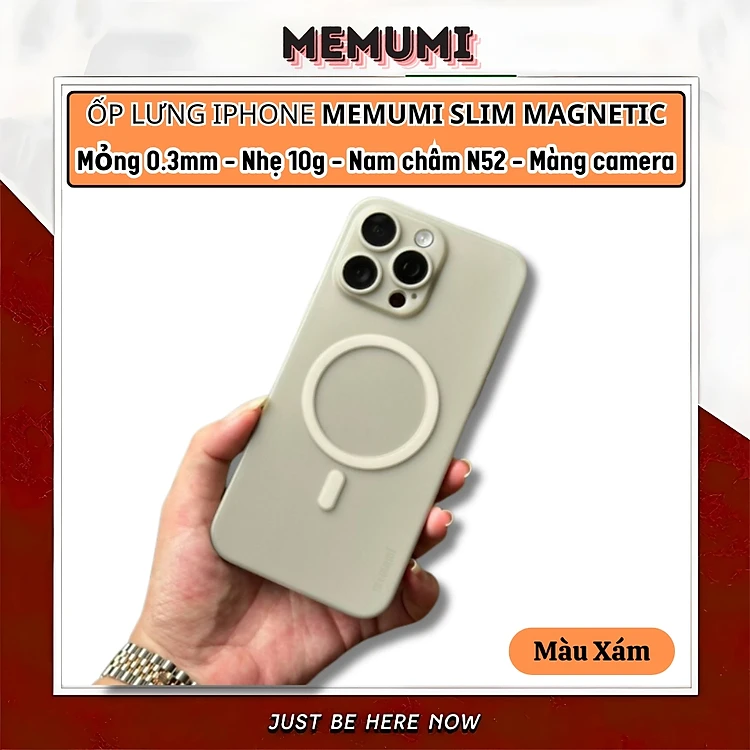 Ốp lưng nhám từ tính N52 siêu mỏng 0.3mm hiệu Memumi Slim Magnetic cho iPhone 16 Pro Max 15 Pro Max 14 Pro Max - màng bảo vệ camera, mặt lưng chống bám bẩn - Hàng nhập khẩu