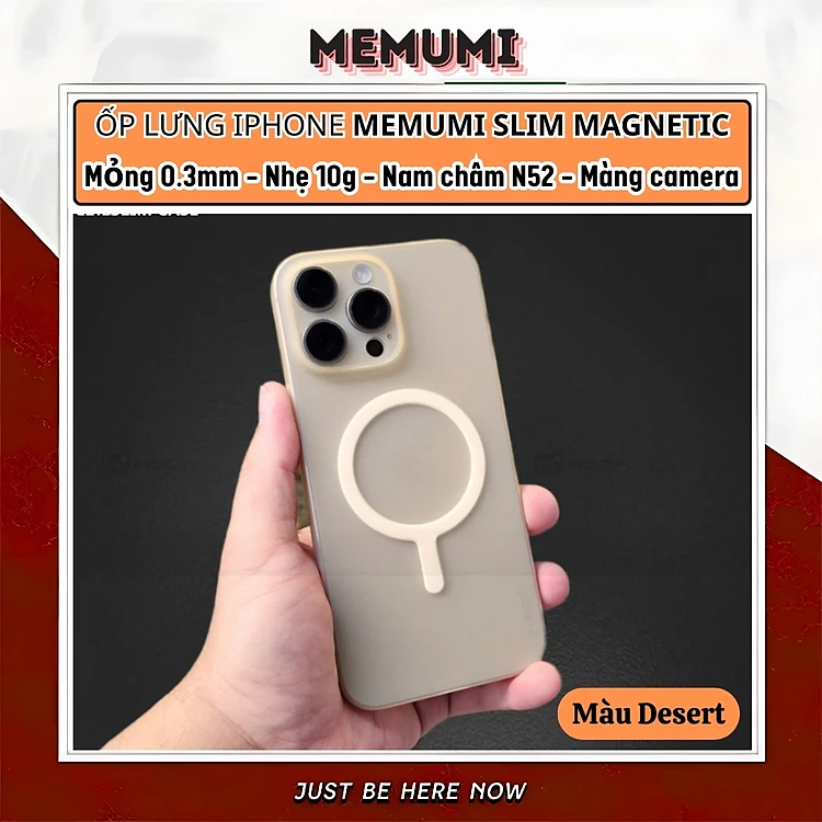 Ốp lưng nhám từ tính N52 siêu mỏng 0.3mm hiệu Memumi Slim Magnetic cho iPhone 16 Pro Max 15 Pro Max 14 Pro Max - màng bảo vệ camera, mặt lưng chống bám bẩn - Hàng nhập khẩu