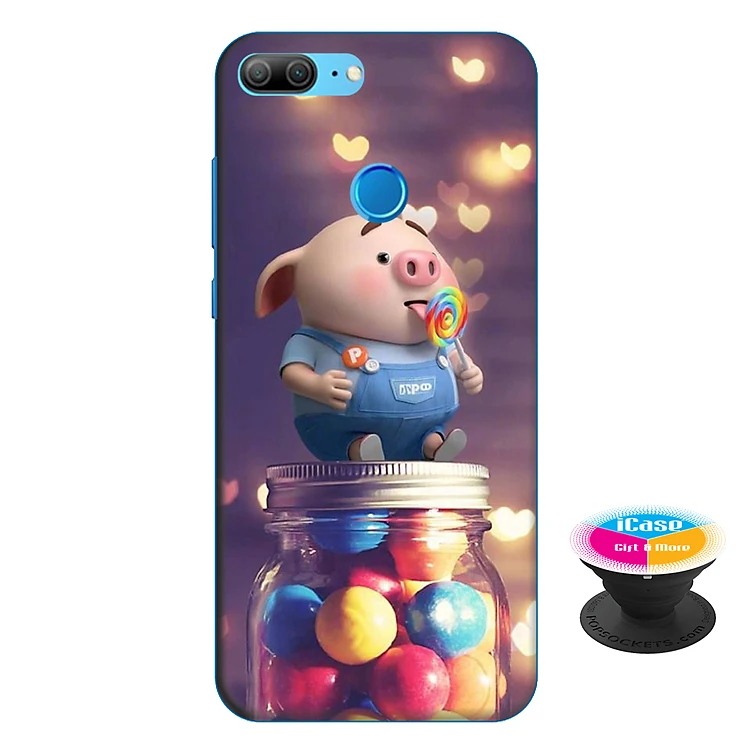 Ốp lưng nhựa dẻo dành cho Honor 9 Lite in hình Heo Con Ăn Kẹo - Tặng Popsocket in logo iCase - Hàng Chính Hãng
