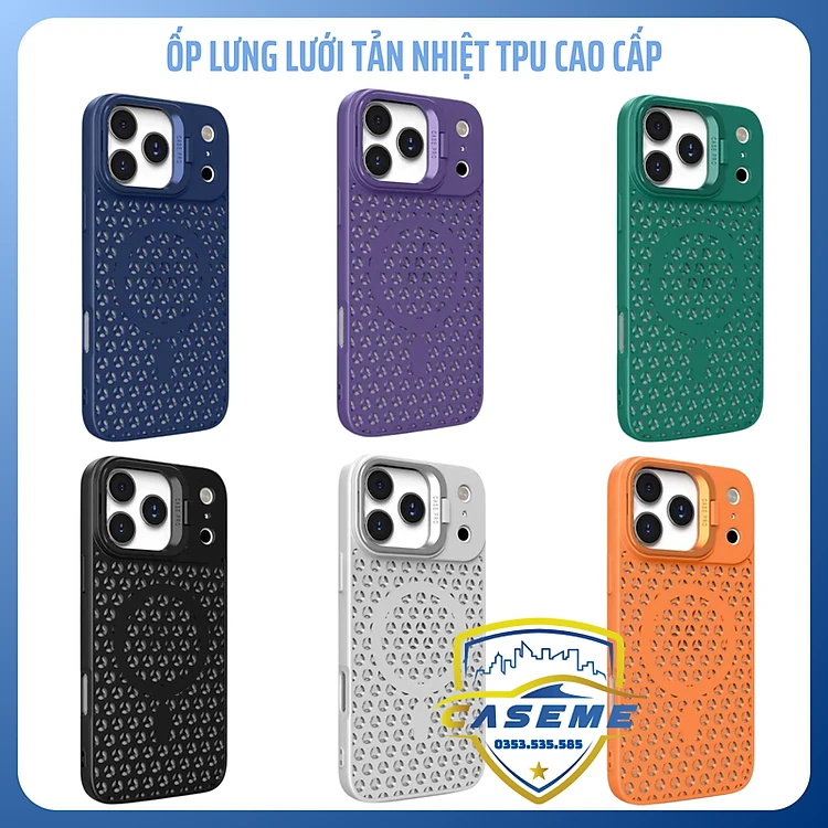 Ốp Lưng Tản Nhiệt Thoáng Khí Silicon Chống Sốc Hỗ Trợ Sạc Từ Tính Không Dây Cho iPhone Air, iPhone 17, iPhone 17 Pro, iPhone 17 Pro Max