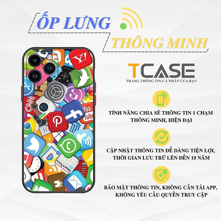 Ốp lưng thông minh TCASE dành cho iphone in hình icon social - Hàng chính hãng