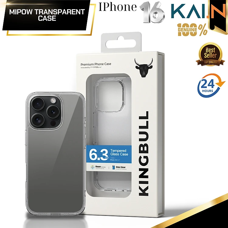 Ốp lưng trong suốt bằng Kính MIPOW TRANSPARENT CASE cho iphone 17/ iPhone 16 Promax/ 16 Pro/ 16 Plus/ Iphone 16, chống ố vàng_ Hàng chính hãng