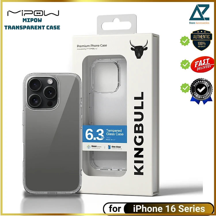 Ốp Lưng Trong Suốt cho iphone 17 series/ iPhone 16 Pro/ 16 Pro Max/ 16/ 16 Plus MIPOW TRANSPARENT CASE, chống ố vàng, mặt lưng kính_ Hàng chính hãng