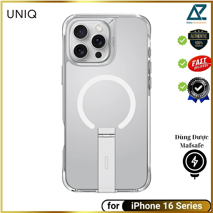 Ốp Lưng Trong Suốt Sạc Từ Tính cho iPhone 16 Pro/ 16 Pro Max UNIQ Magclick Charging Eleva, có chân đế, chính hãng UNIQ_ Hàng chính hãng