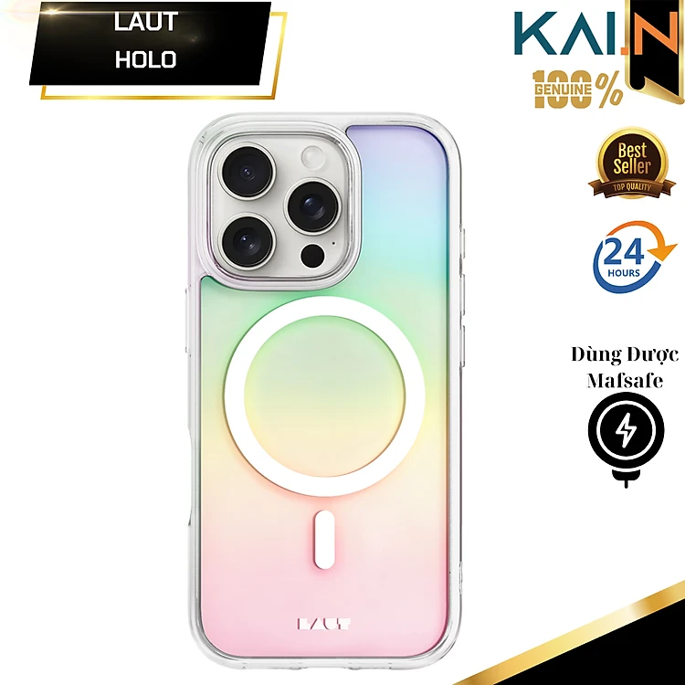 Ốp lưng trong suốt sạc từ tính dành cho iPhone 16 Promax/ 16 Pro LAUT Holo, chống sốc, chính hãng Gremany_ Hàng chính hãng