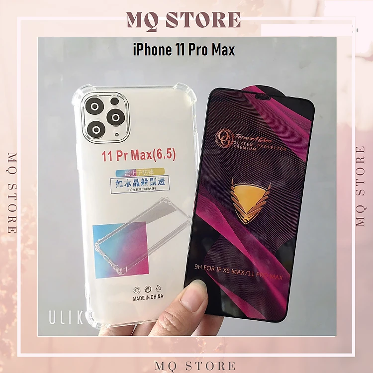 Ốp lưng và cường lực cho iPhone 11 Pro Max - Loại trong suốt chống sốc 4 góc ( hàng chính hãng)