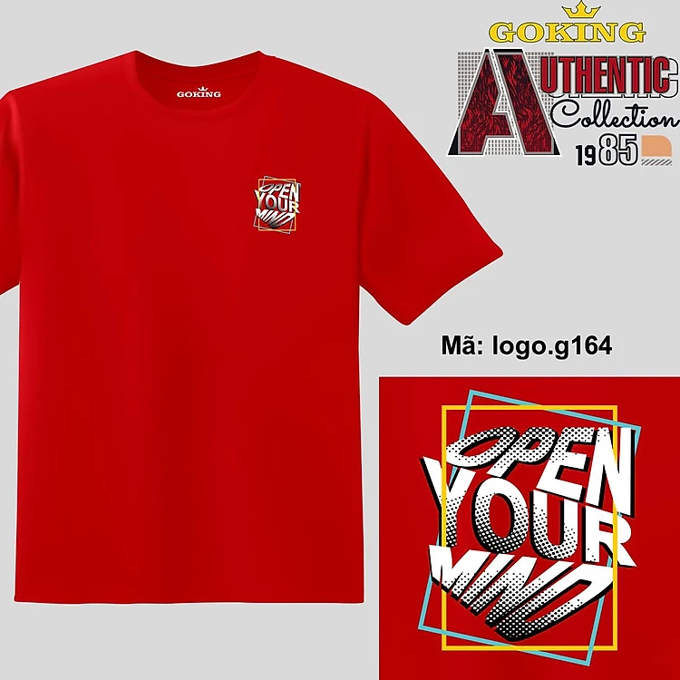 OPEN YOUR MIND, mã logo-g164. Áo thun nam nữ in logo đẹp. Áo phông thoát nhiệt Nhật Bản GOKING cho cặp đôi, gia đình, đội nhóm, đồng phục công ty