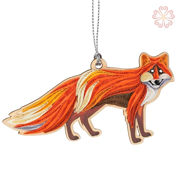 Ornament Nghệ Thuật Làm Từ Giấy Xoắn Kết Hợp Khắc Gỗ Veener Size 6.5x6.5cm Model Cáo