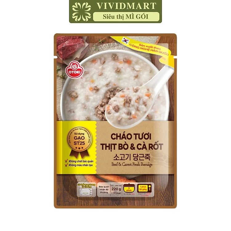 OTOKI - Cháo tươi Ottogi hương vị Thịt bò & cà rốt, Cháo tươi thịt bò và cà rốt Ottogi ăn liền (220g/gói)