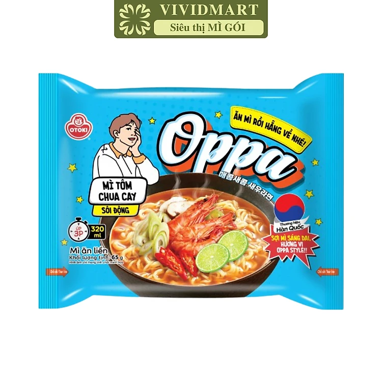 OTOKI - Mì Oppa hương vị Tôm chua cay, Oppa mì tôm chua cay Oppa Hàn Quốc, Mì Oppa Hàn Quốc ăn liền (65g/gói)
