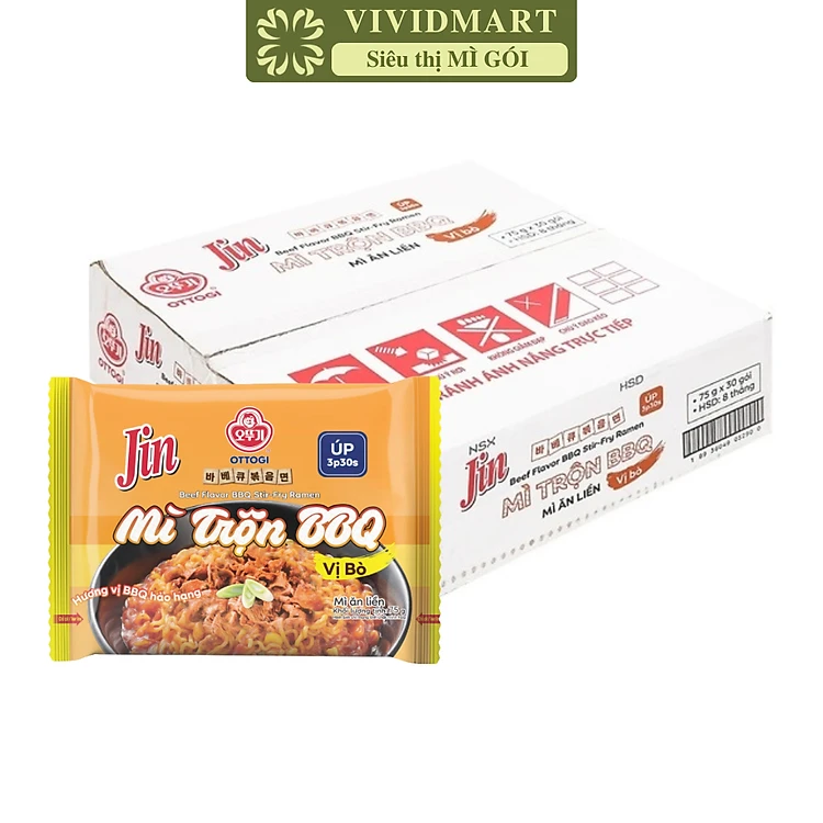 OTTOGI - Mì úp Jin hương vị trộn BBQ bò, Mì trộn BBQ bò Jin, Mì trộn BBQ Ottogi Jin hương vị bò (75g/gói)