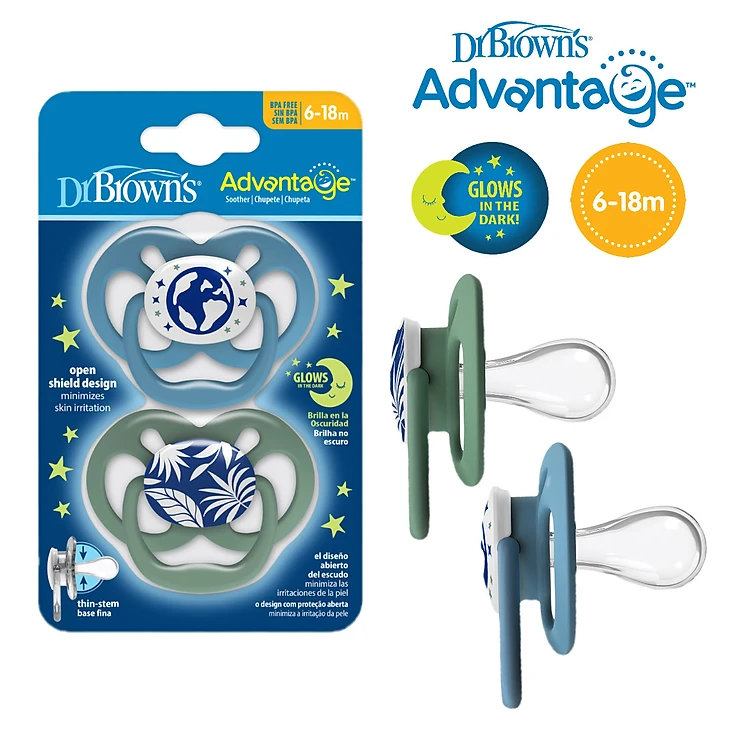 [ PA22004-INTL ] Bộ 2 ty ngậm Dr.Brown's Advantage đầu tròn, phát sáng dạ quang ( 6-18m )