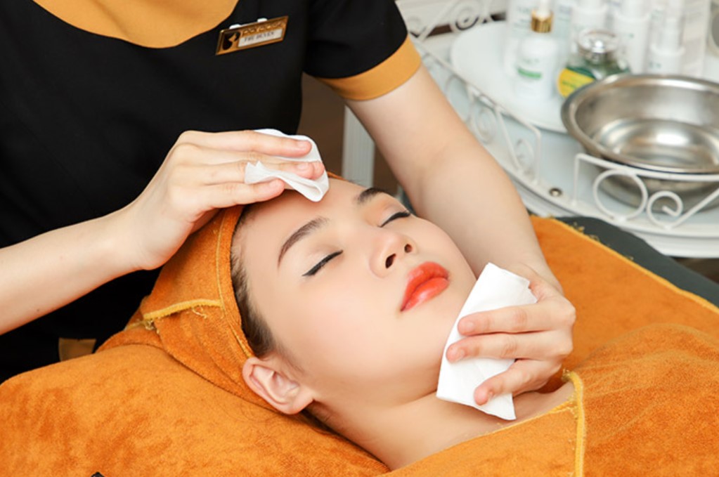 Bước 8: Lau sạch mặt bằng cotton nước lạnh (nước bình thường).