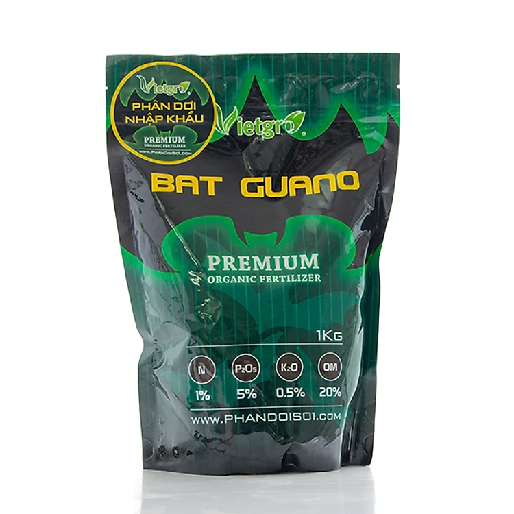 Phân bón hữu cơ chuyên dùng cho hoa lan, hoa hồng, bonsai, rau màu Vietgro - Phân Dơi Bat Guano - Túi 1kg