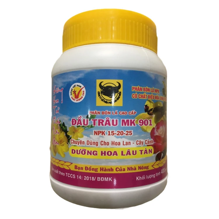Phân bón Đầu trâu MK 901 chuyên cho hoa Lan và hoa kiểng giúp Kích hoa - Dưỡng hoa lâu tàn - Hộp 400g