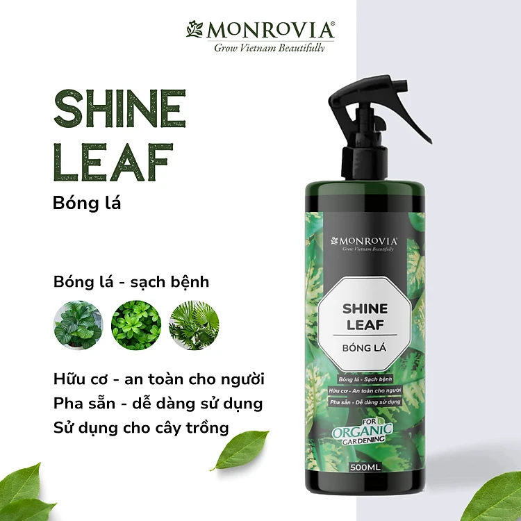 Phân bón hữu cơ BÓNG LÁ MONROVIA pha sẵn giúp lá cây khỏe mạnh, xanh bóng, dành cho cây trồng dung tích 500ml