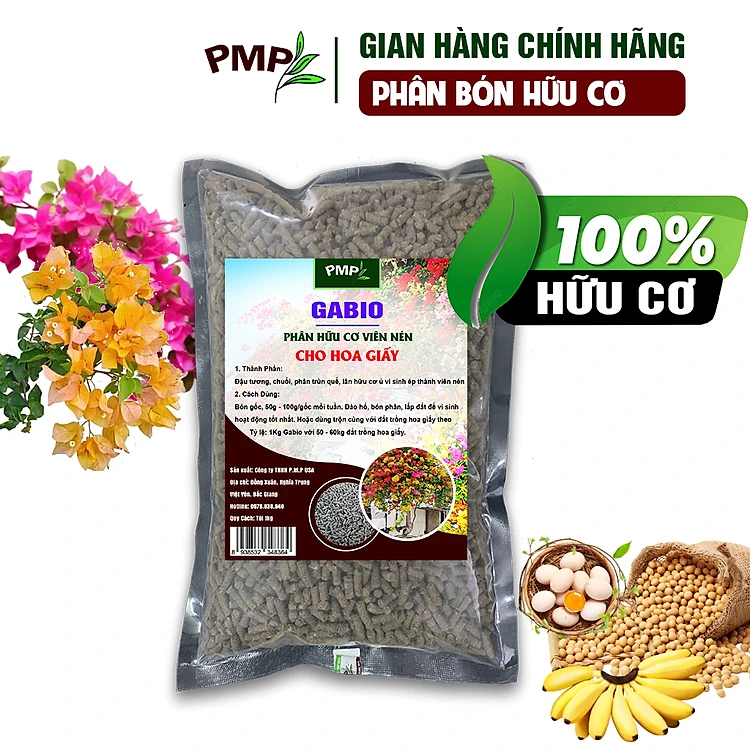 Phân bón hữu cơ cho hoa giấy Gabio PMP viên nén tan chậm 1kg