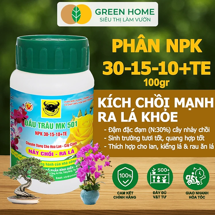 Phân Bón Lá Đầu Trâu MK 501-701-901, GreenHome,Chai 100GR,Đặc Biệt Dành Cho Hoa Lan Và Cây Cảnh