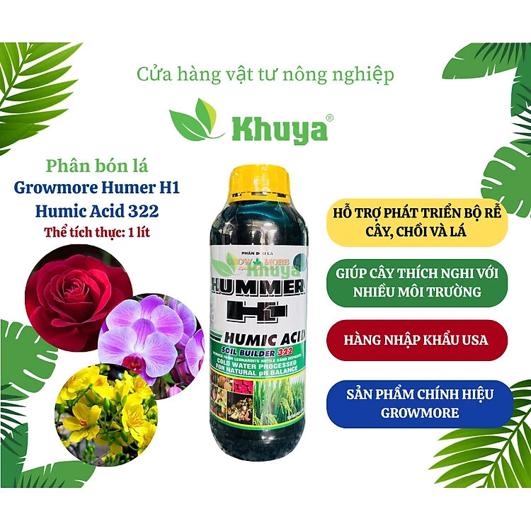 Phân bón lá Growmore Humer H1 Humic Acid 322 loại 1 Lít Phát Triển Thân, Chồi, Lá