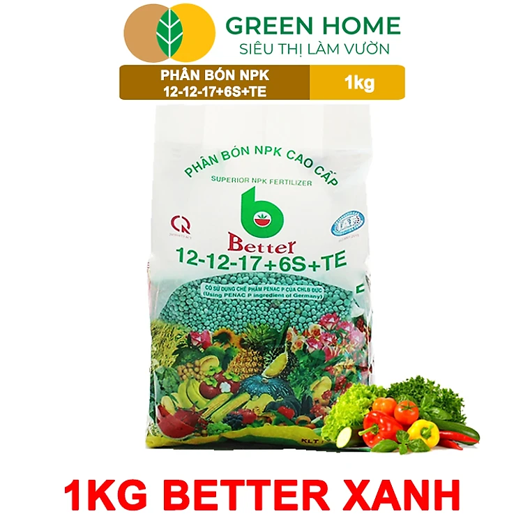 Phân bón NPK 12-12-17-6S+TE Greenhome, Better, Bao 1kg, Tăng Đậu Trái Cây Ăn Củ, Quả