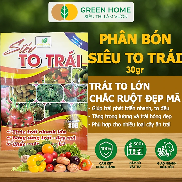 Phân Bón Siêu To Trái, GreenHome, Gói 30Gr, Thúc Trái Nhanh Lớn, Chắc Ruột, Nặng Ký, Đẹp Mã