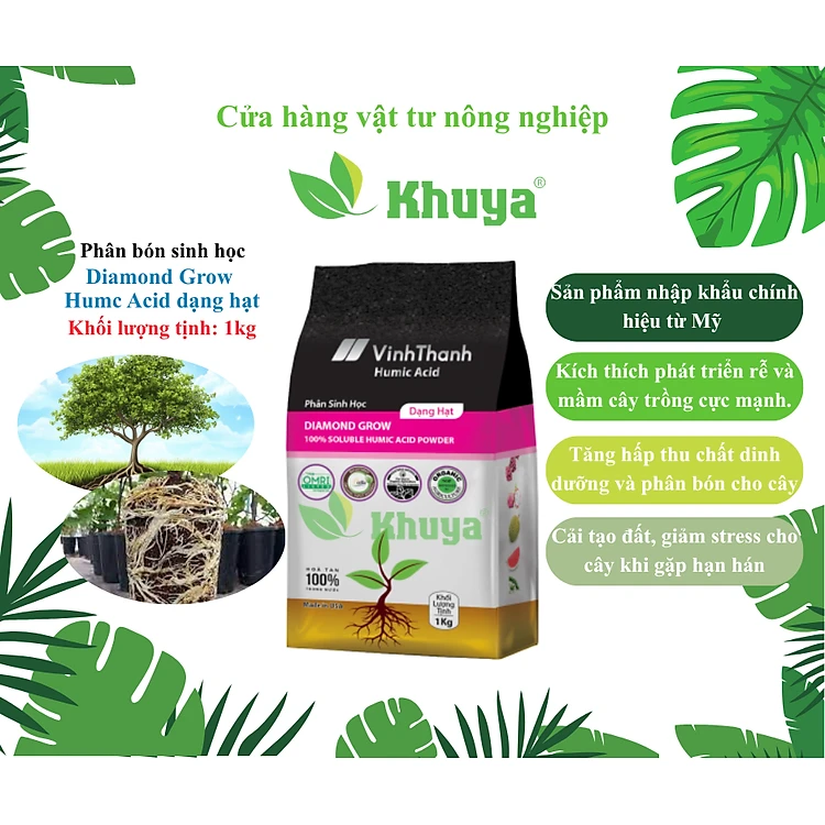 Phân bón sinh học Vĩnh Thạnh Humic Mỹ Diamond Grow dạng hạt 1kg