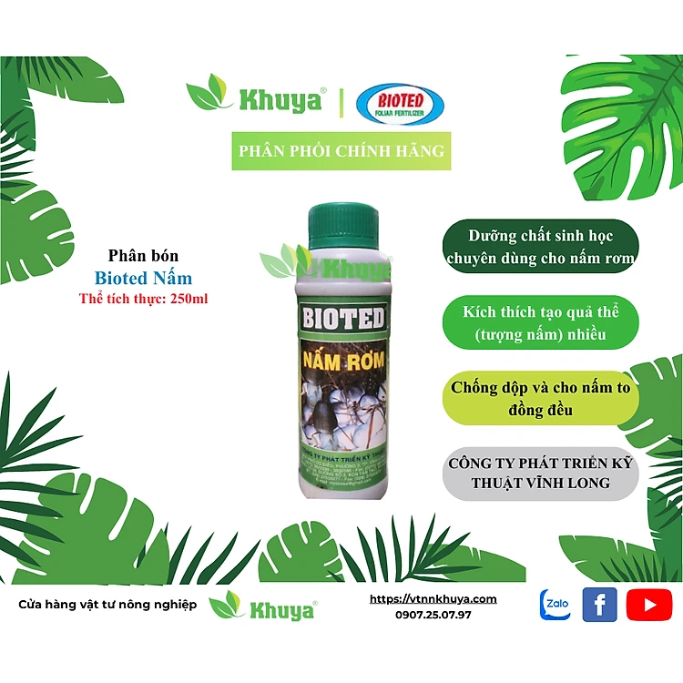 Phân bón tăng trưởng Bioted nấm rơm 250ml