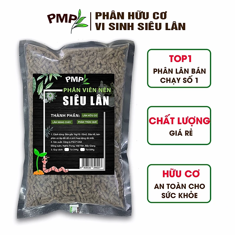 Phân tan chậm vi sinh siêu lân PMP bón cho hoa, cây cảnh, rau sạch dạng viên nén 1kg