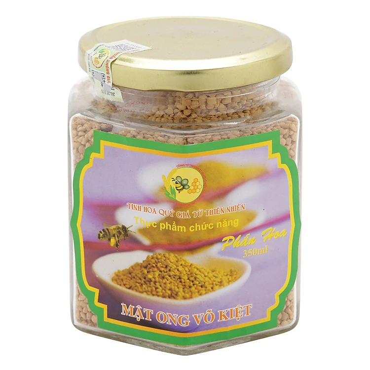 - Phấn Hoa Võ Kiệt (350g) - Phấn hoa mật ong thực chất là những tế bào sinh sản giống đực của các loài hoa là sản phẩm tự nhiên được con ong chăm chỉ thu lượm từ nhụy hoa có giá trị dinh dưỡng rất cao, thậm chí còn hơn cả thực phẩm trứng sữa.