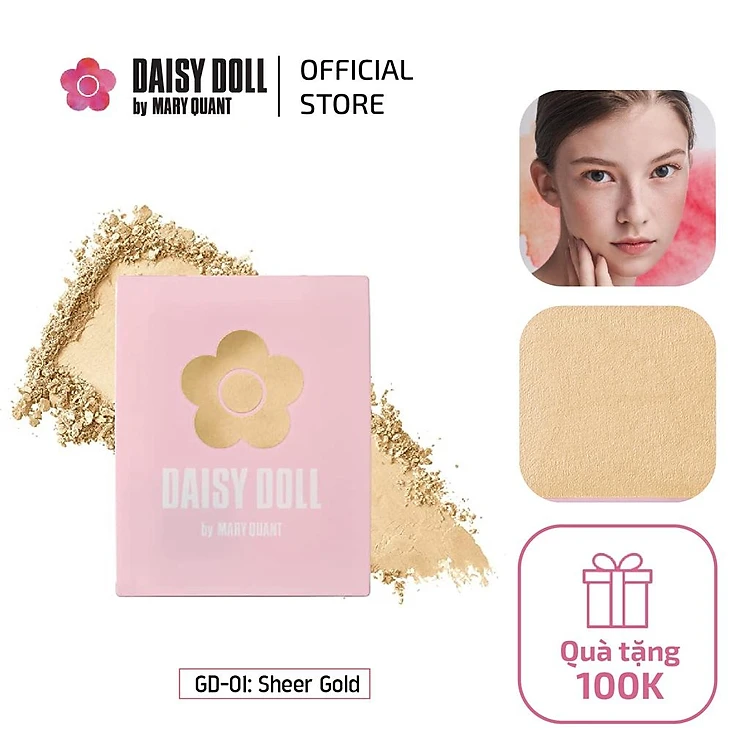 Phấn Má Hồng Daisy Doll By Mary Quant Nhật Bản Màu GD-01 Sheer Gold Siêu Mịn Hộp Kèm Cọ 8.3g