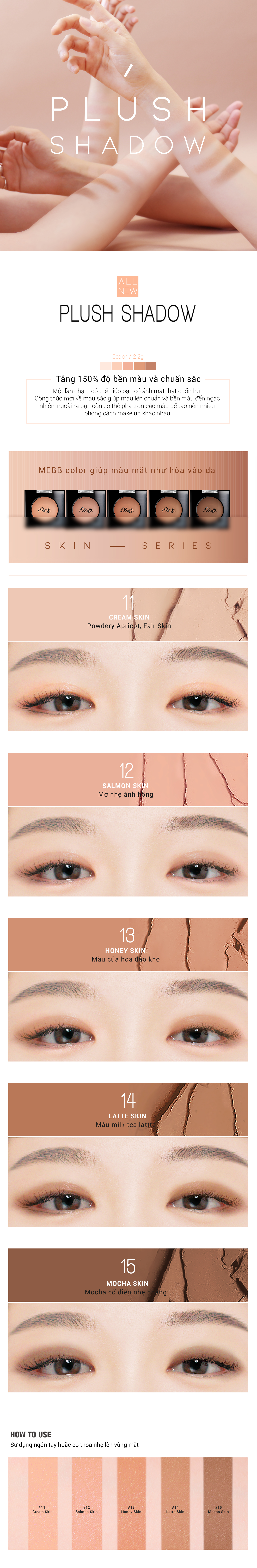 *HDSD: Trước tiên hãy thoa một lớp kem lót mắt để màu được bám lâu, sau đó dùng cọ hoặc tay tán đều lớp phấn toàn bầu mắt hoặc theo phong cách makeup cá nhân