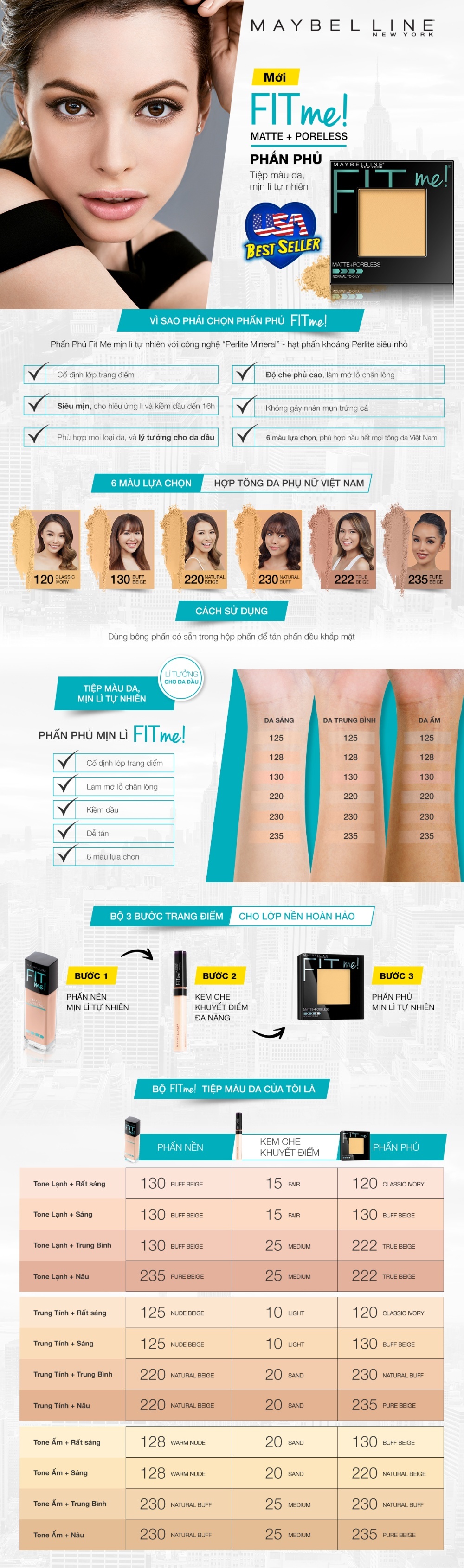 Phấn Mịn Lì Tự Nhiên Maybelline Fit Me Set + Smooth (9g) - Hạt phấn mỏng mịn đều màu trên da.