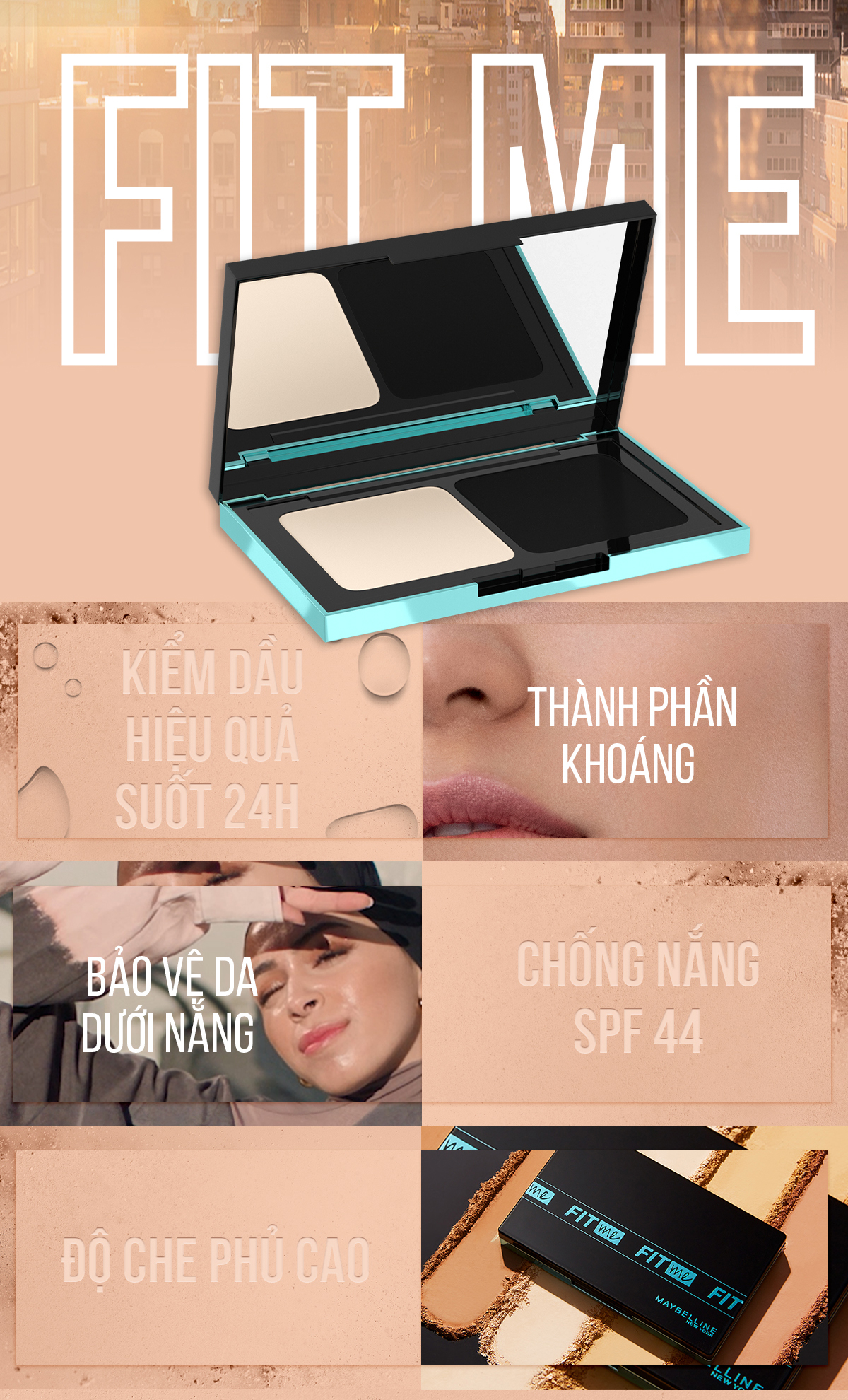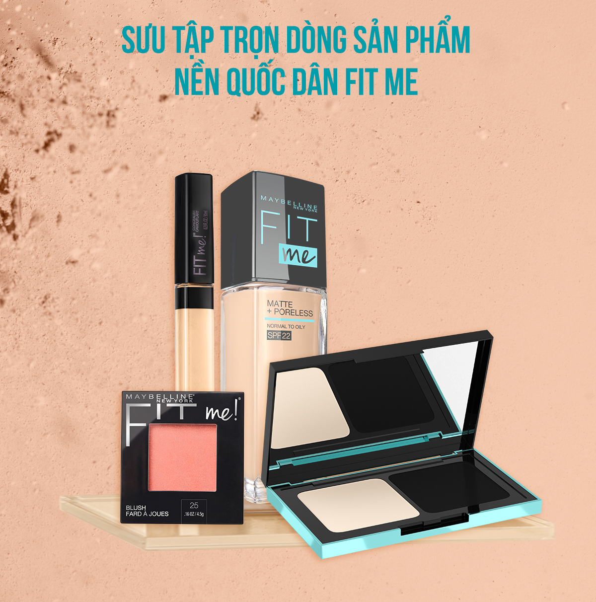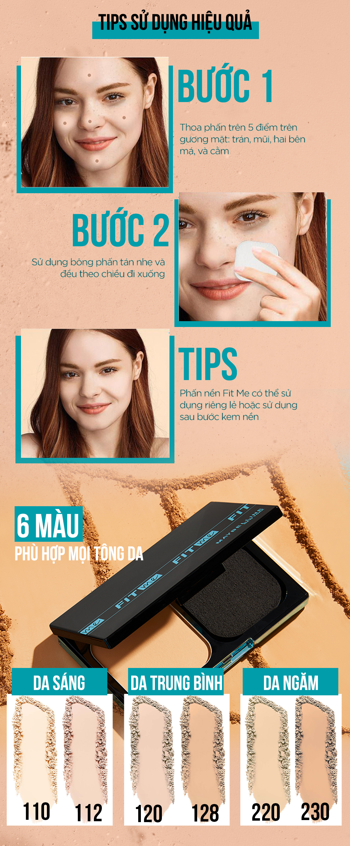 - Sau bước kem nền Fit Me/ kem che khuyết điểm Fit Me, sử dụng phấn nền Fit Me Compact Powder để khóa lớp trang điểm trên da.