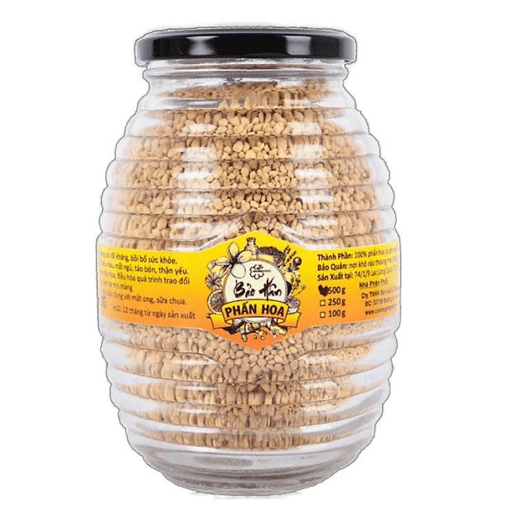 - Phấn Ong Hoa Cà Phê Bảo Hân Nato1825 (500g)được ong thợ thu gom từ các bông hoa bằng cách dùng mật ong về các hạt phấn nhỏ lại, để ở giỏ phấn ở hai chân sau đem về tổ. Người nuôi ong dùng tấm nhựa hoặc tấm nhôm có khoan các lỗ sao cho ong thợ chui lọt nhưng hai hạt phấn bị gạt rơi vào khay phấn.