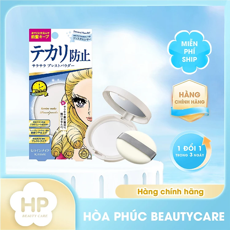 Phấn Phủ Che Khuyết Điểm Hỗ Trợ Chống Nắng Da Kissme Heroine Make Smooth Up Pressed Powder Dạng Nén - Màu Xanh Pha Lê #01