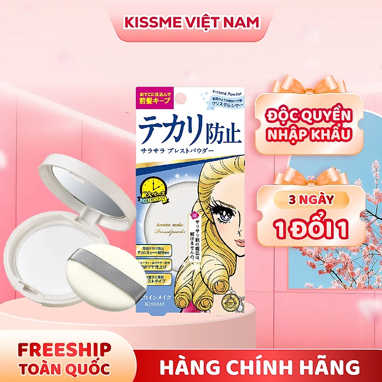 Phấn Phủ Chống Nắng Giúp Che Khuyết Điểm Cho Da Dạng Nén Màu Xanh Pha Lê Kissme Heroine Make Smooth Up Pressed Powder #01 8 G