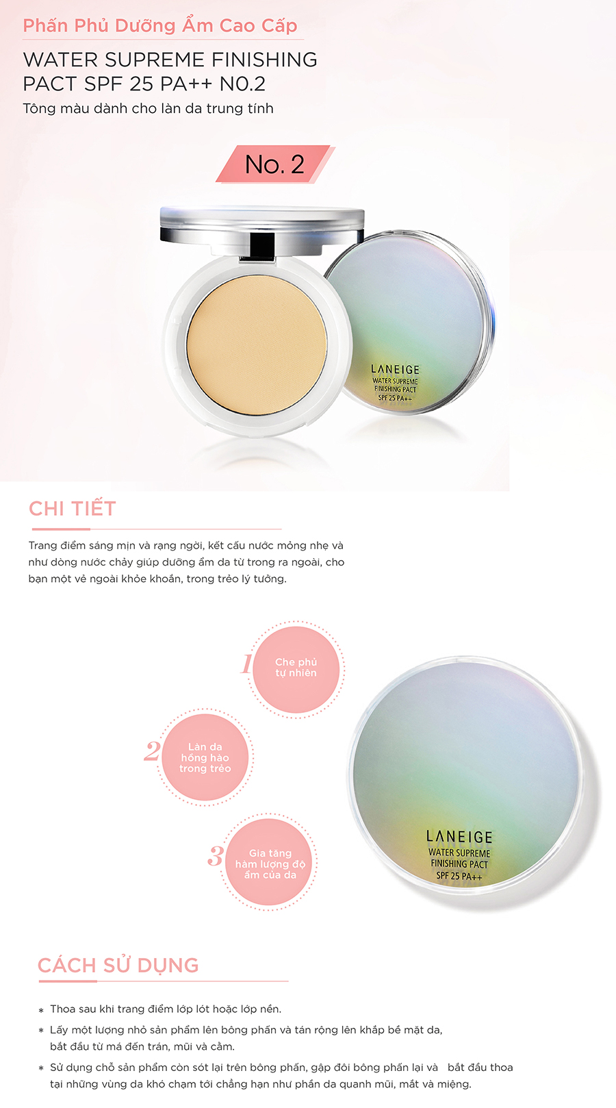 - Phấn Phủ Dưỡng Ẩm Dạng Nén Laneige Water Supreme Finishing Pact SPF 25PA++ No.2 (Da trung tính)