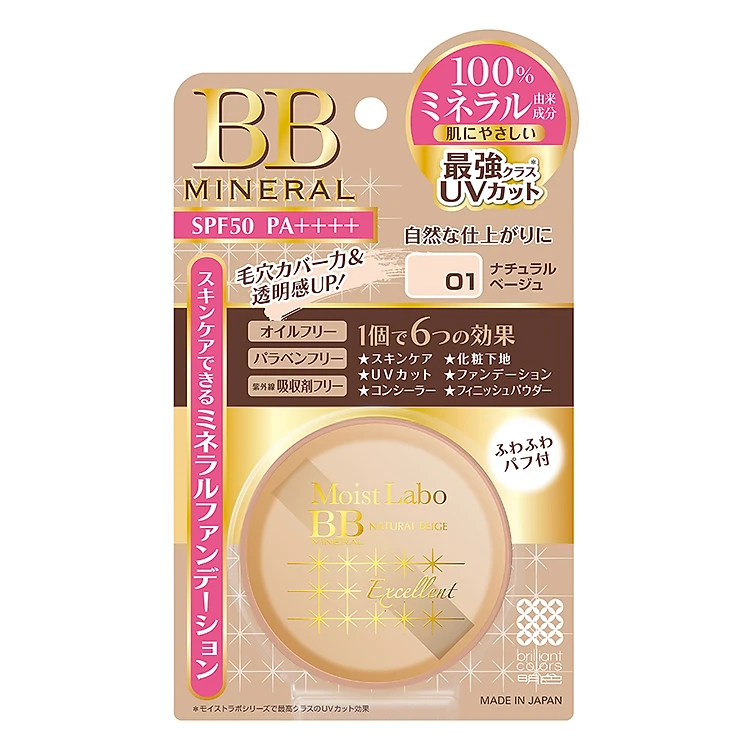 - Phấn Phủ Meishoku Moist-Labo BB Mineral Foundation (6g) với thành phần có nguồn gốc 100% khoáng chất tự nhiên. Sản phẩm giúp ngăn chặn hoàn toàn tia cực tím với SPF50, PA++++.