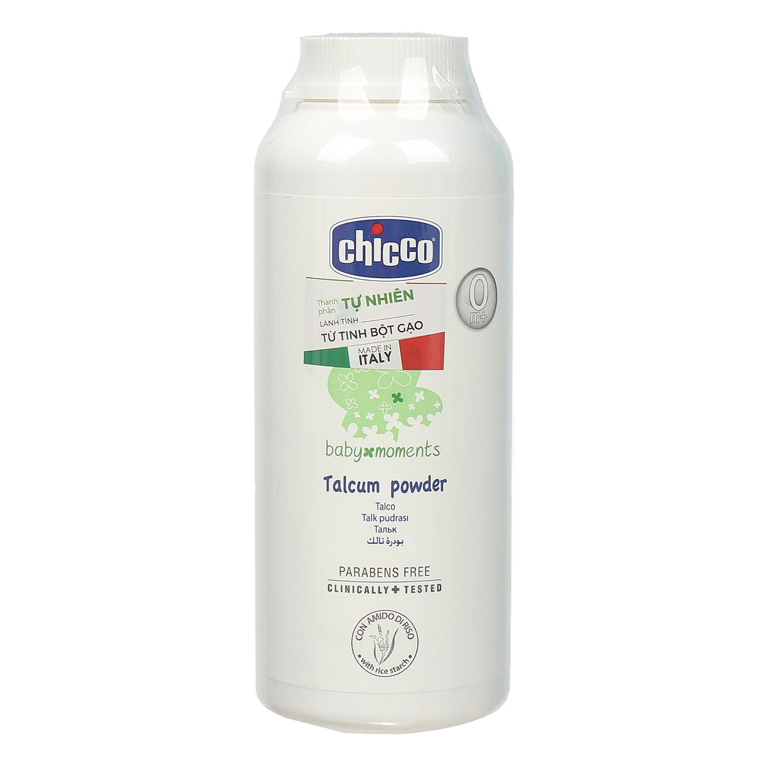 Chiết xuất từ tinh bột gạo, phấn rôm Chicco giúp làm mát da, nuôi dưỡng da mềm mịn và luôn khô thoáng, chống rôm sảy hay hăm.