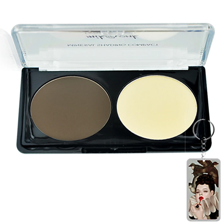 Bộ phấn 2 ngăn gồm màu sáng và tối dùng để tạo điểm nhấn, đồng thời khắc phục những khiếm khuyết trên gương mặt. Hạt phấn mịn, độ bám tốt và chống đổ dầu.
